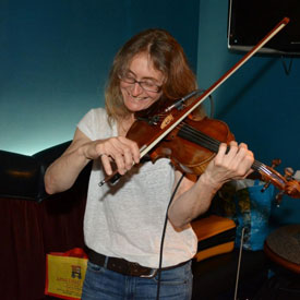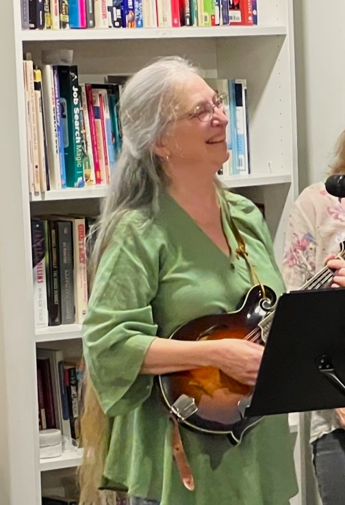 Ellen grew up in a musical family in Kingston, Ontario. Her mother loved choral music, madrigals and opera, while her father played trumpet in a Canadian Forces band during the day and in a jazz quintet at night. One of her earliest musical memories is of creeping halfway down the stairs at night to listen unobserved while her mother’s madrigal group practiced in the living room. She is told that she was only two when she began to try to match the long trumpet notes that her dad was playing while warming up for his practice sessions. Her father later introduced her to folk music and she began to seek out the folk revivalists like Joan Baez and Ewan McCall. She grew up singing all the time, but only started to take instruments seriously as an adult. She played guitar first, then added penny whistle, to join in Irish sessions, and finally took up the mandolin.